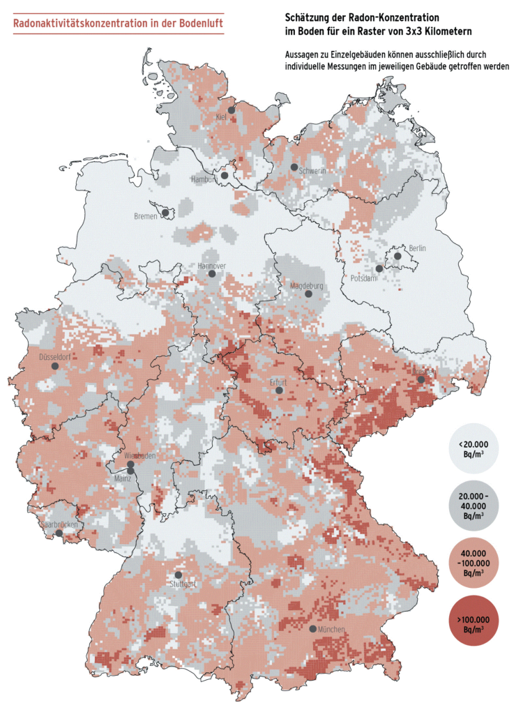 knapp 1900 zusätzlichen Lungenkrebs-Todesfällen durch Radon in der Raumluft. Damit ist das