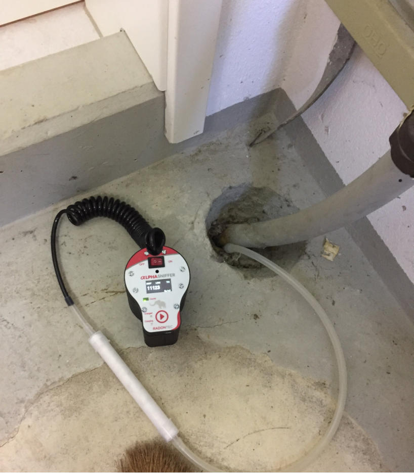 Radon-Quellensuche (Radon-Sniffing)Bei der Radon-Quellensuche geht es um eine Erkennung der wichtigen konvektiven Radon-Eintrittsstellen und deren Lokalisierung. Nur nach einer gründlichen Untersuchung können die richtigen Maßnahmen getroffen werden. Im Zuge einer Sanierungsplanung können auffällige Eintrittsstellen erkannt und abgedichtet werden.Auch die Aktivitätskonzentrationen an den Radon-Eintrittsstellen schwanken im zeitlichen Verlauf stark - noch stärker als die Raumluftkonzentrationen. Die beim Radon-Sniffing vorgefundenen Aktivitätskonzentrationen können im Bereich der Bodengaskonzentrationen im höheren kBq-Bereich liegen.Aus diesem Grund sollte bei der Messung vor Ort eine ausreichende Druckdifferenz (Unterdruck auf der Raumseite) gegenüber der Bodenluft unter dem Gebäude vorherrschen. Dies gelingt im Winter oft durch den natürlichen thermischen Auftrieb während der Heizperiode. Durch eine gezielte ventilatorgesteuerte Unterdruckhaltung z.B. nach dem Blower-Door-Prinzip kann ein Unterdruck auch außerhalb der Heizperiode hergestellt werden. In üblichen Einfamilienhäusern genügen schon 10 bis 20 Pascal Unterdruck aus. Aus diesem Grund können Messungen zur Radon-Quellensuche auch gut in Verbindung mit dem Rn50-Test während der Wartezeit bis zur Ausgleichskonzentration in der Raumluft durchgeführt werden.=> siehe Radon-Check Rn50-Test und Quellensuche